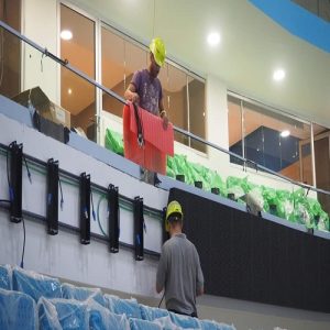 Stadyum LED ekran, büyük kalabalık yerler için idealdir. Yüksek çözünürlüklü resim ve geniş görüntüleme açısı en iyi kalitede resim ve videoları sağlar. Sağlam gövde, ekranı yüksek hızlı toplar dahil olmak üzere her türlü hasara karşı korur.